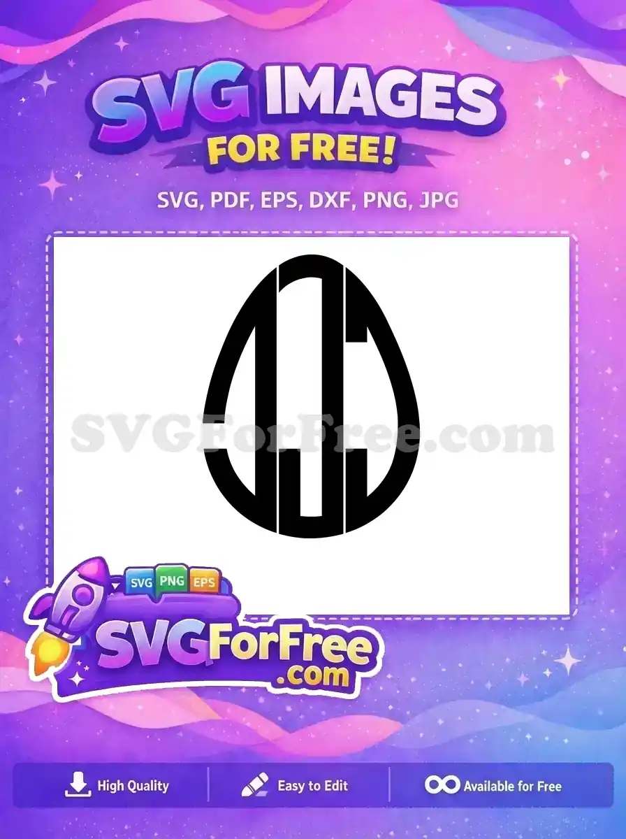 Black egg-shaped monogram frame with three vertical bars, a free customizable file.