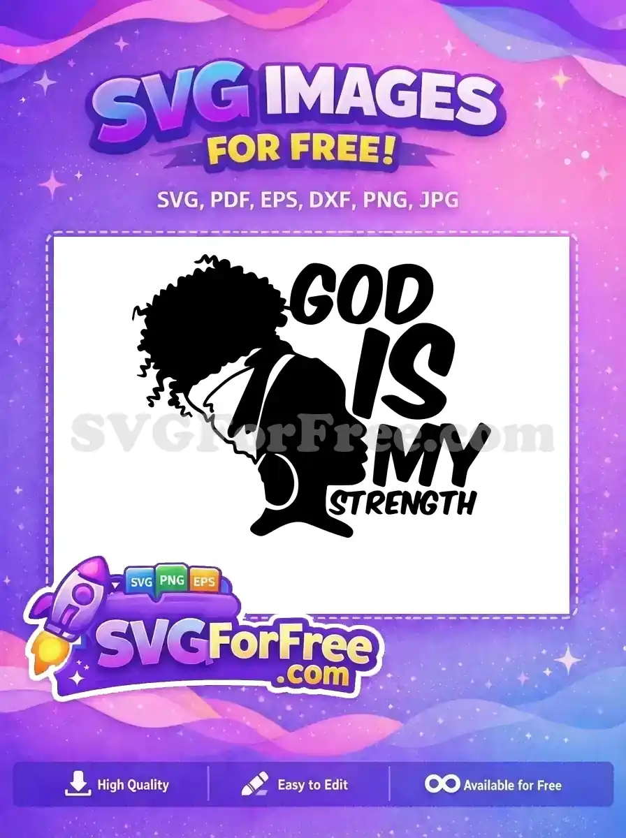 Free Afro American Silhouette Free Curly Hair God Is My Strength Free SVG – Instant Download
