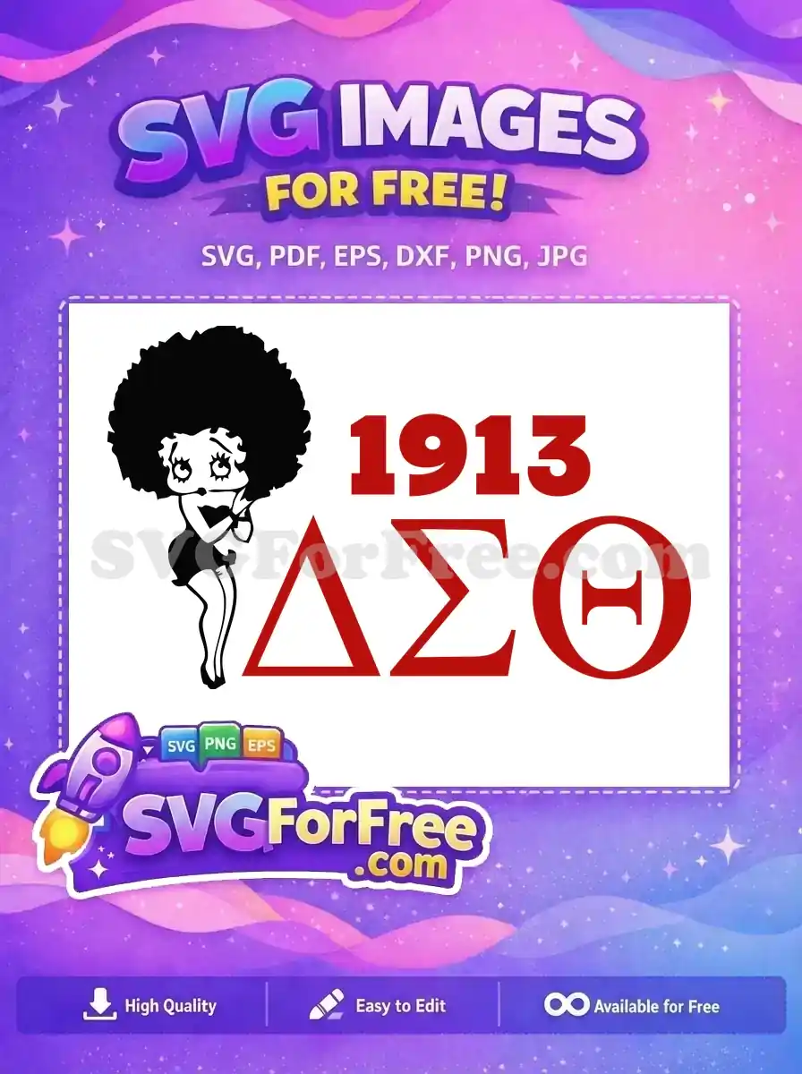 Celebrate sisterhood with this free Delta Sigma Theta 1913 SVG, featuring a vibrant, iconic character. Perfect for unique crafts and apparel, this free design embodies pride and history.