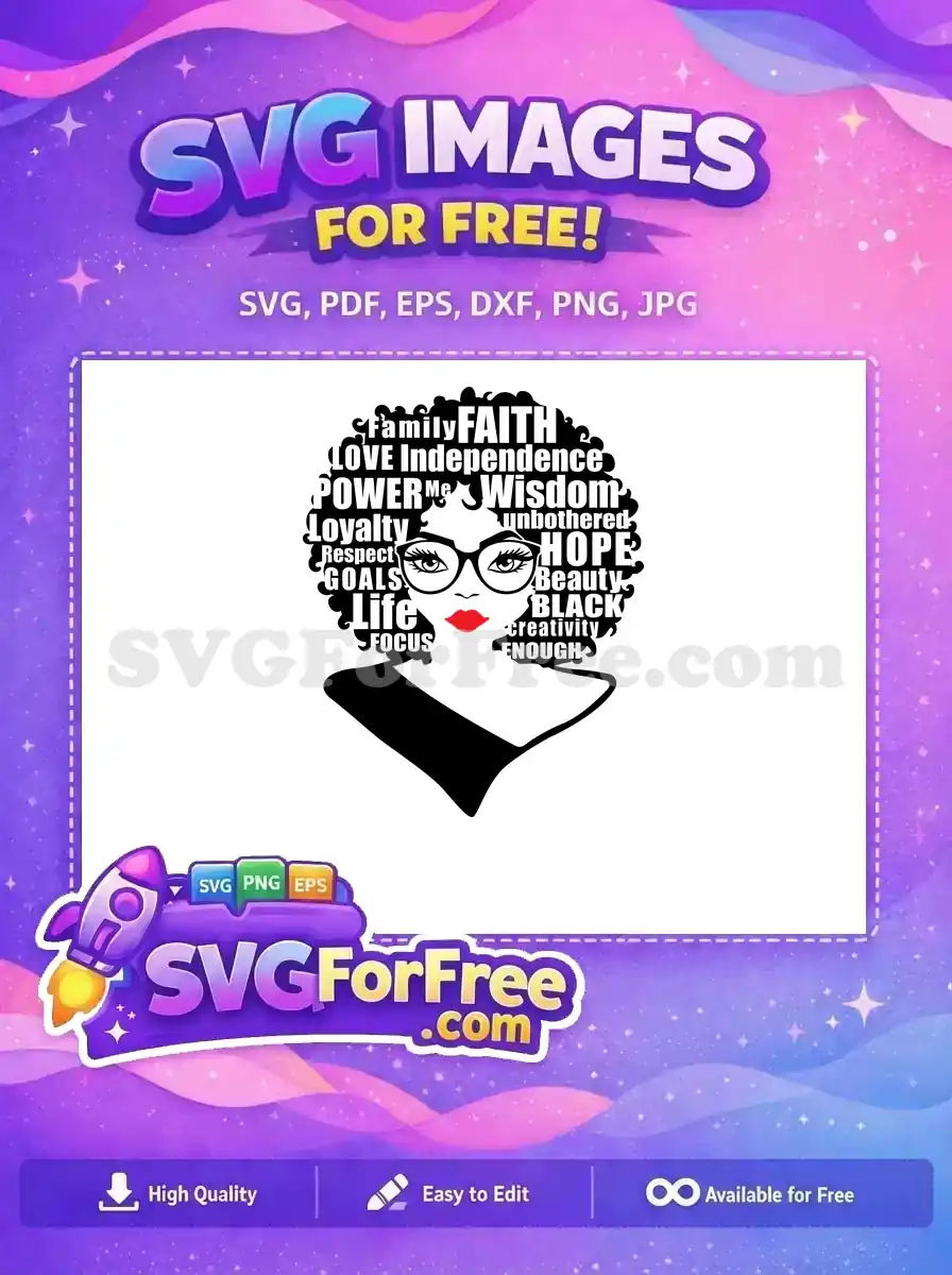 Free Afro Diva Free Black Woman Natural Hair Free SVG – Instant Download