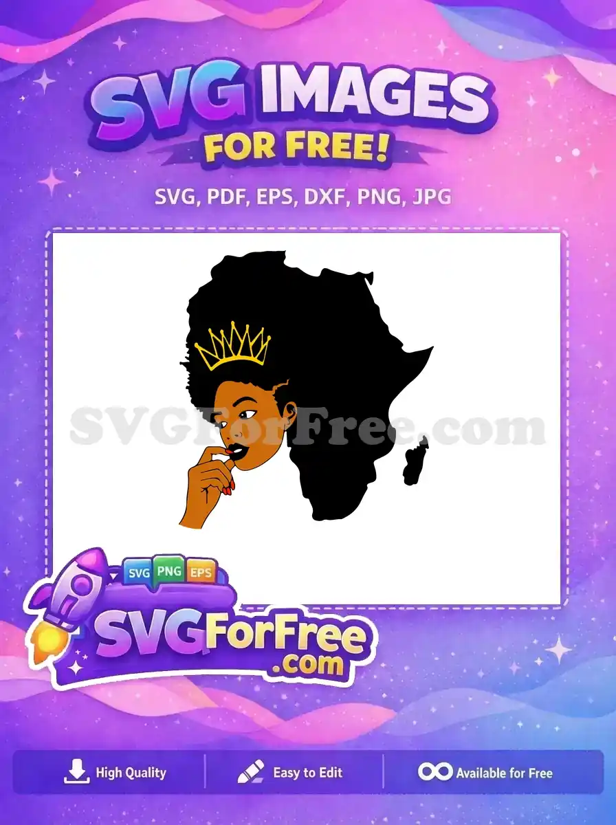 Free Afro Hairstyle Free Gold Crown Africa Continent Free SVG – Instant Download