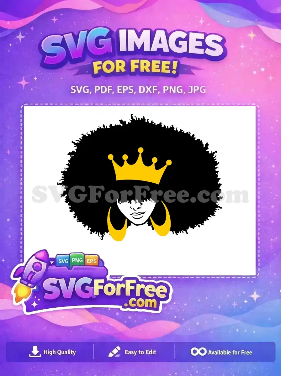 Celebrate natural beauty with this free Queen Afro SVG design! Perfect for empowering diverse projects, a truly inspiring free graphic.