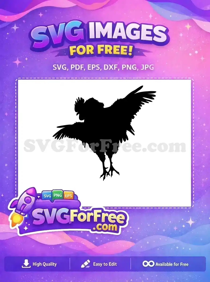 Free Aggressive Rooster Flapping Wings Free Black Silhouette Farm Animal Free SVG – Instant Download