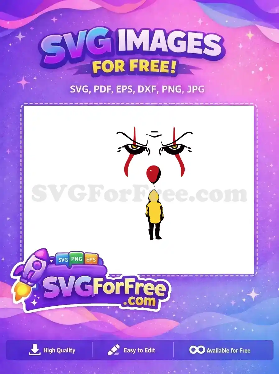 A captivating free design featuring an iconic horror clown’s gaze over a child with a red balloon. Perfect for fans!