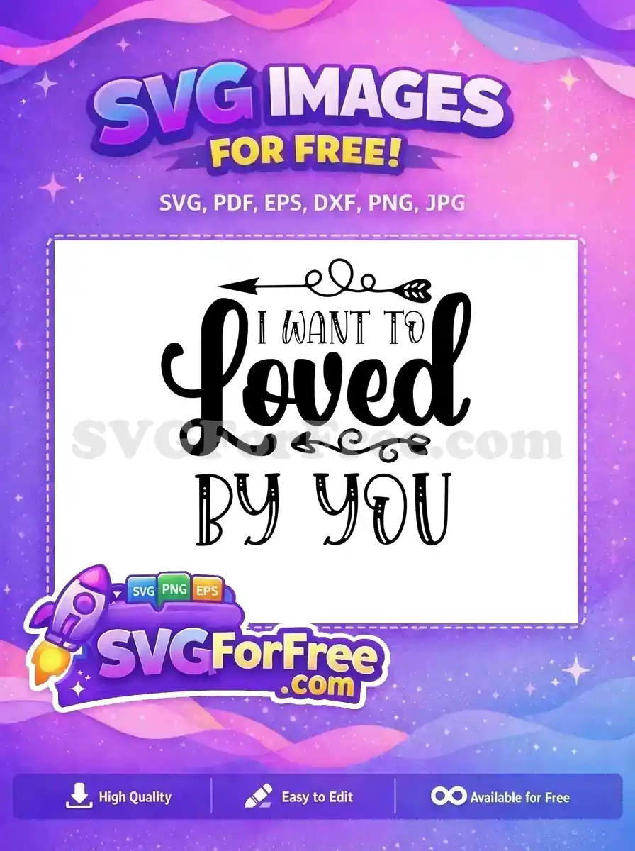 Script quote ‘I want to be LOVED BY YOU’ with flourishes, a free vector for romance.