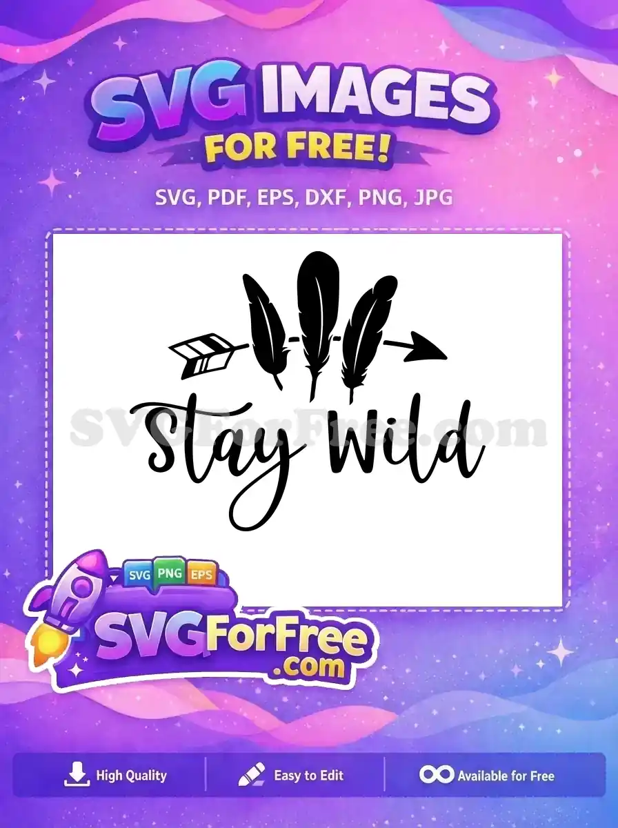 Free Arrow Feathers Free Stay Wild Lettering Motivation Free SVG – Instant Download