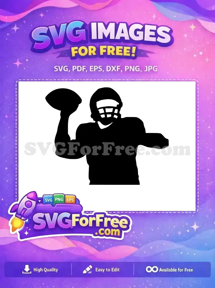 Silhouette of an American football player holding the ball and prepared to run or throw, a free black vector.