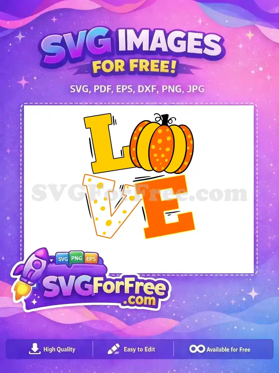Bold ‘LOVE’ text where a pumpkin replaces the letter ‘O’, a colorful free fall affection graphic.