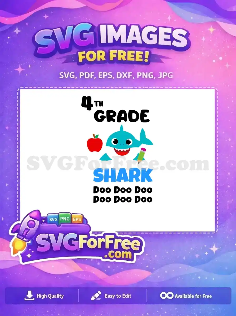Dive into school with this free 4th Grade Shark design! Perfect for shirts, posters, and celebrating back-to-school fun.