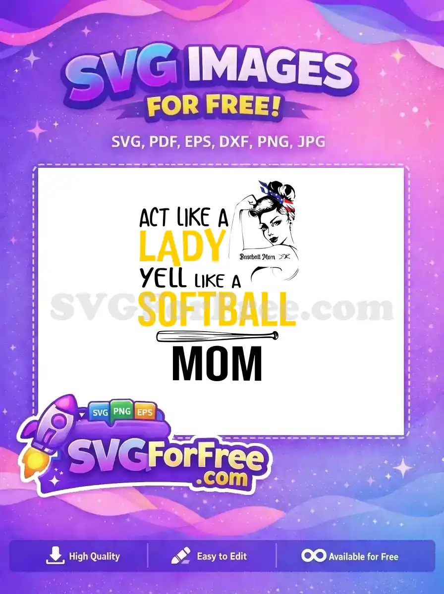 A softball-themed quote: ‘ACT LIKE A LADY, YELL LIKE A SOFTBALL MOM.’ A free, fun design for sports moms.