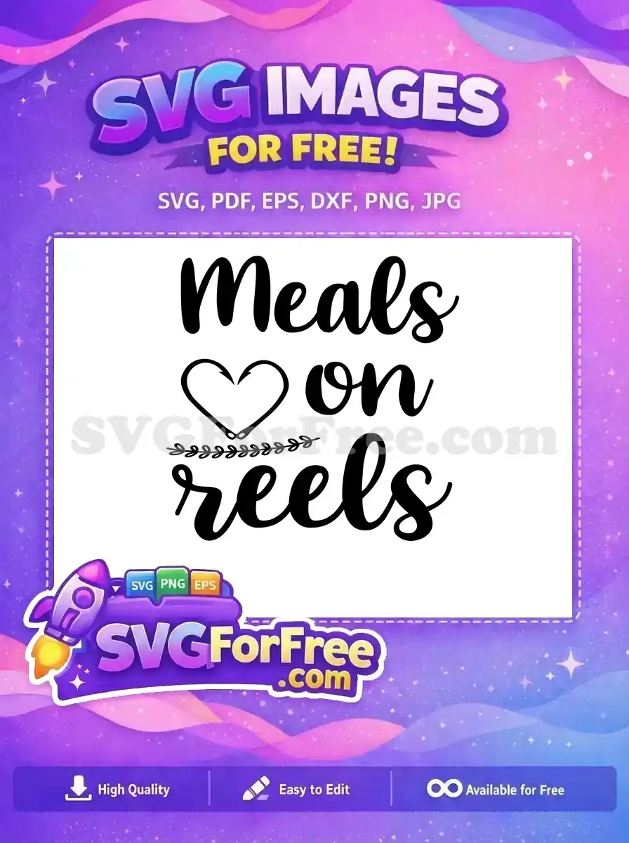 Creative ‘Meals on reels’ with heart-shaped hook, available as a free vector for food-loving anglers.