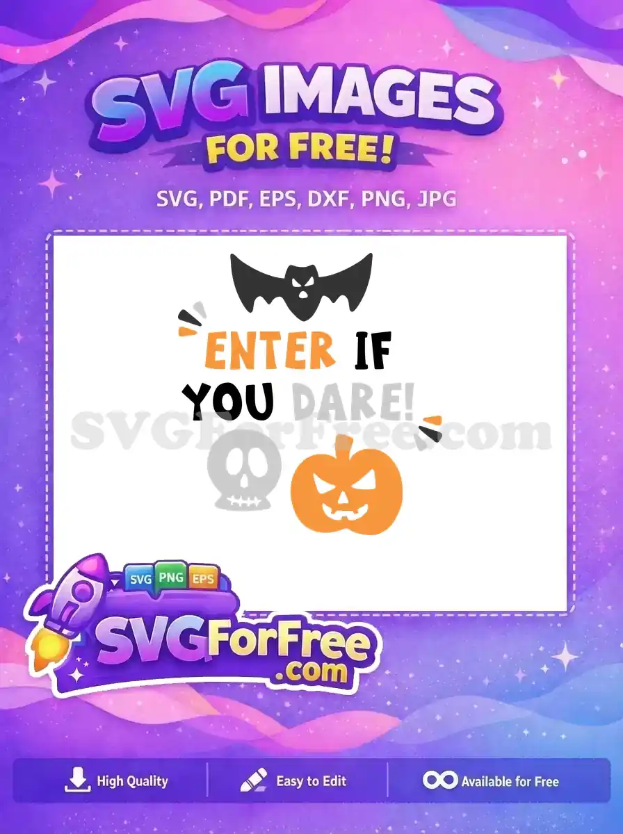 A spooky “ENTER IF YOU DARE!” invitation with a bat and a grinning jack-o’-lantern. A free welcome sign.