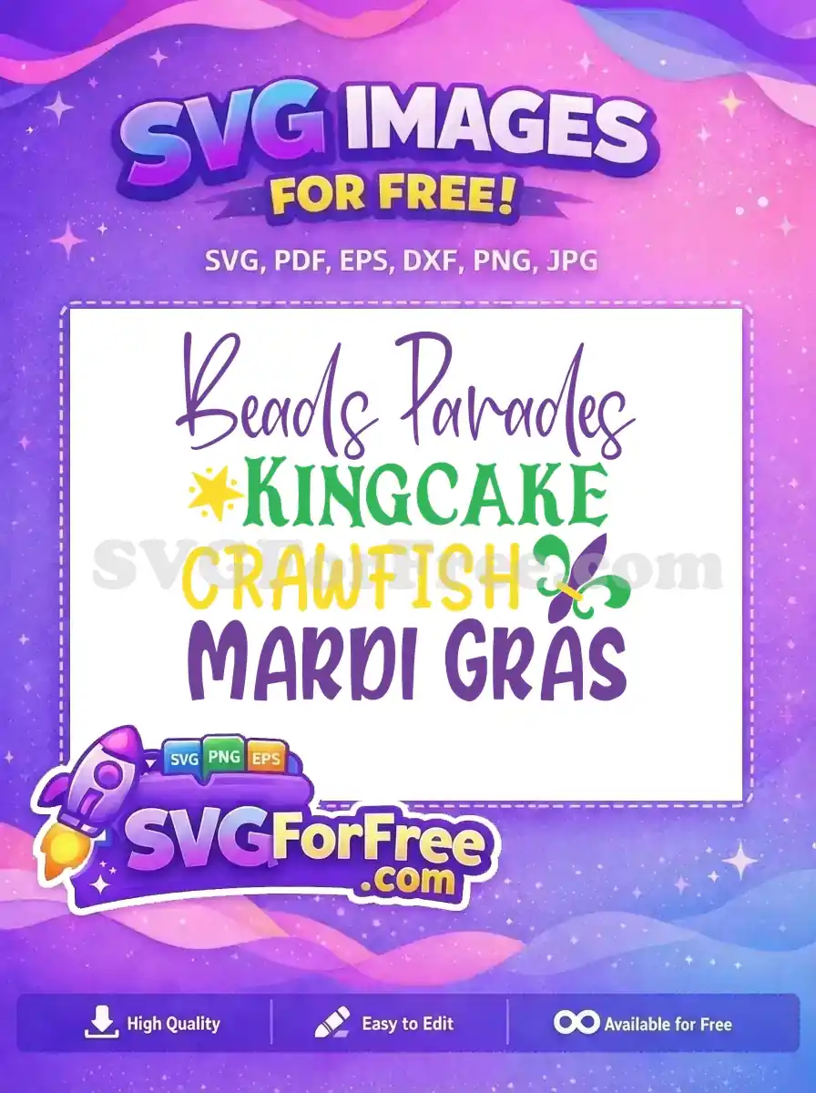 Free Beads Parades Free Kingcake Crawfish Mardi Gras Free SVG – Instant Download