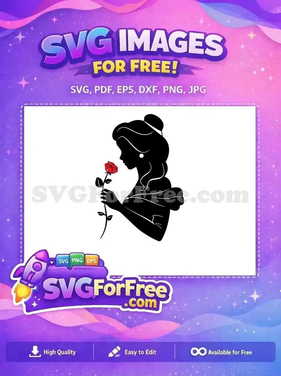 Free Belle Silhouette Free Red Rose Beauty Beast Free SVG – Instant Download