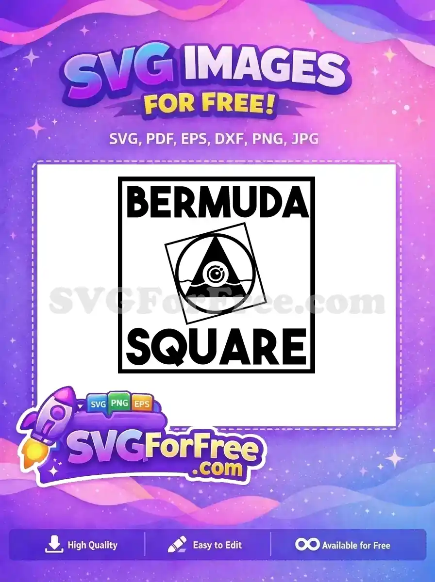 Geometric logo ‘BERMUDA SQUARE’ with a pyramid eye icon, available as a free mysterious graphic.
