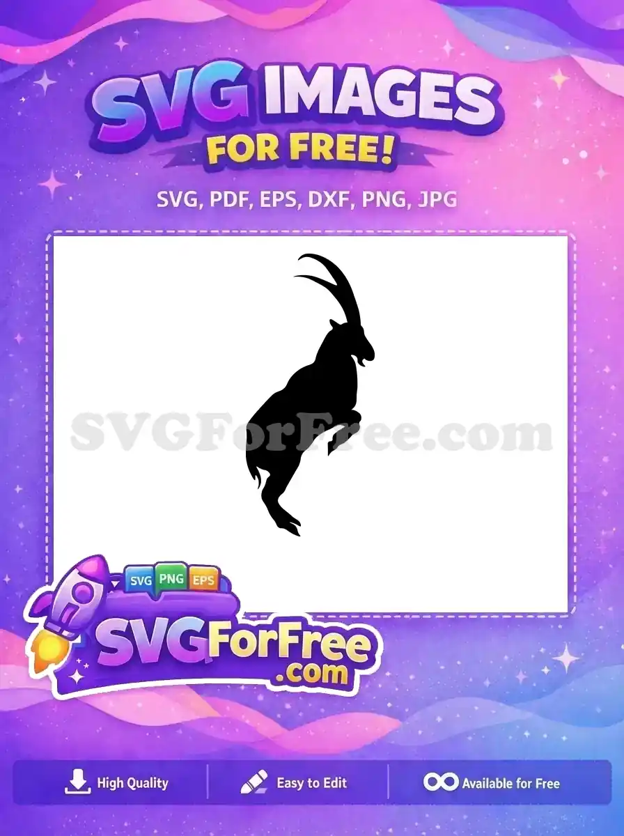 Silhouette of an ibex jumping upward, a free action graphic.