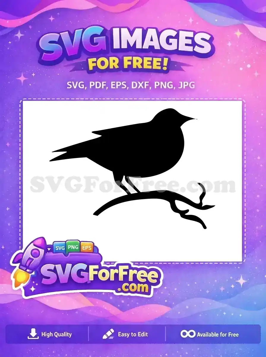 Free Bird on Branch Free Black Silhouette Birds Silhouette Free SVG 1 – Instant Download