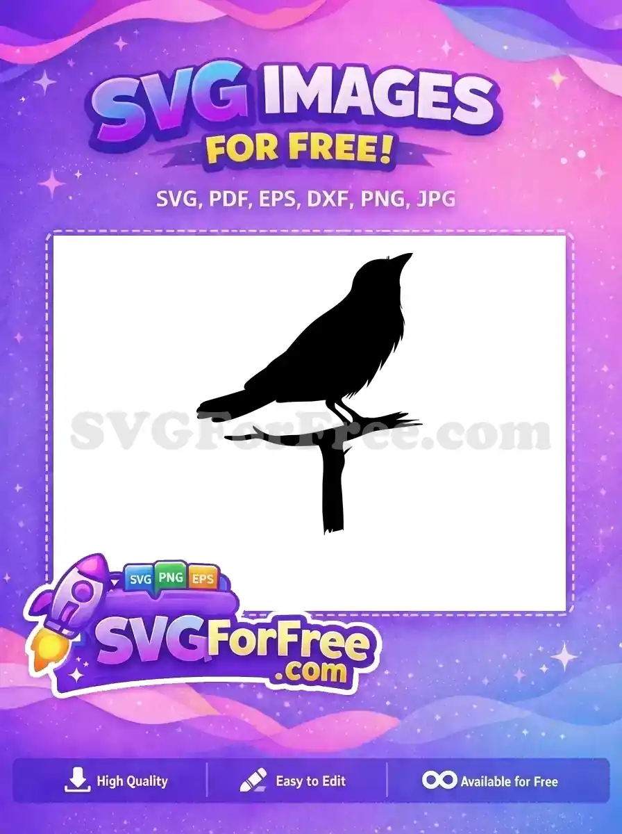 Free Bird on Branch Free Detailed Black Silhouette Nature Free SVG