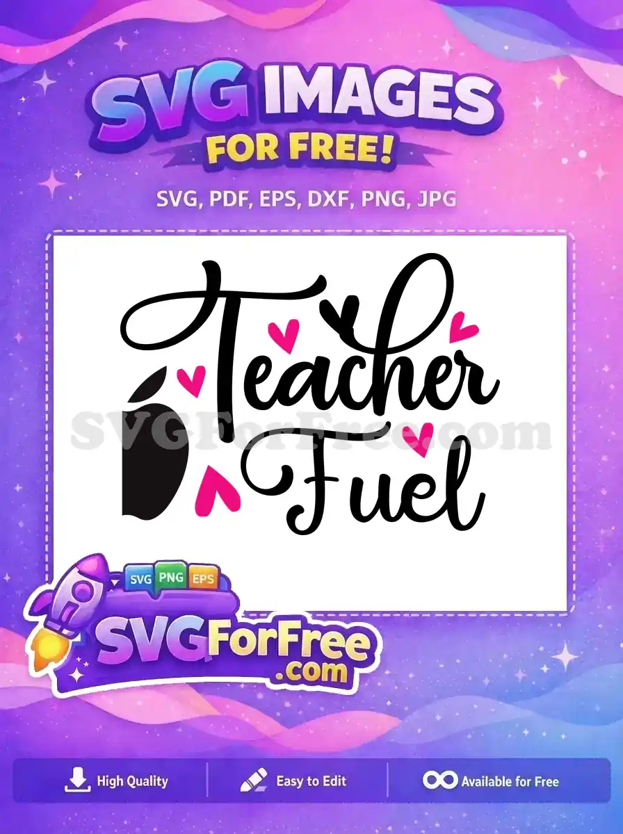 Free Black Apple Free Pink Hearts Teacher Fuel Free SVG – Instant Download