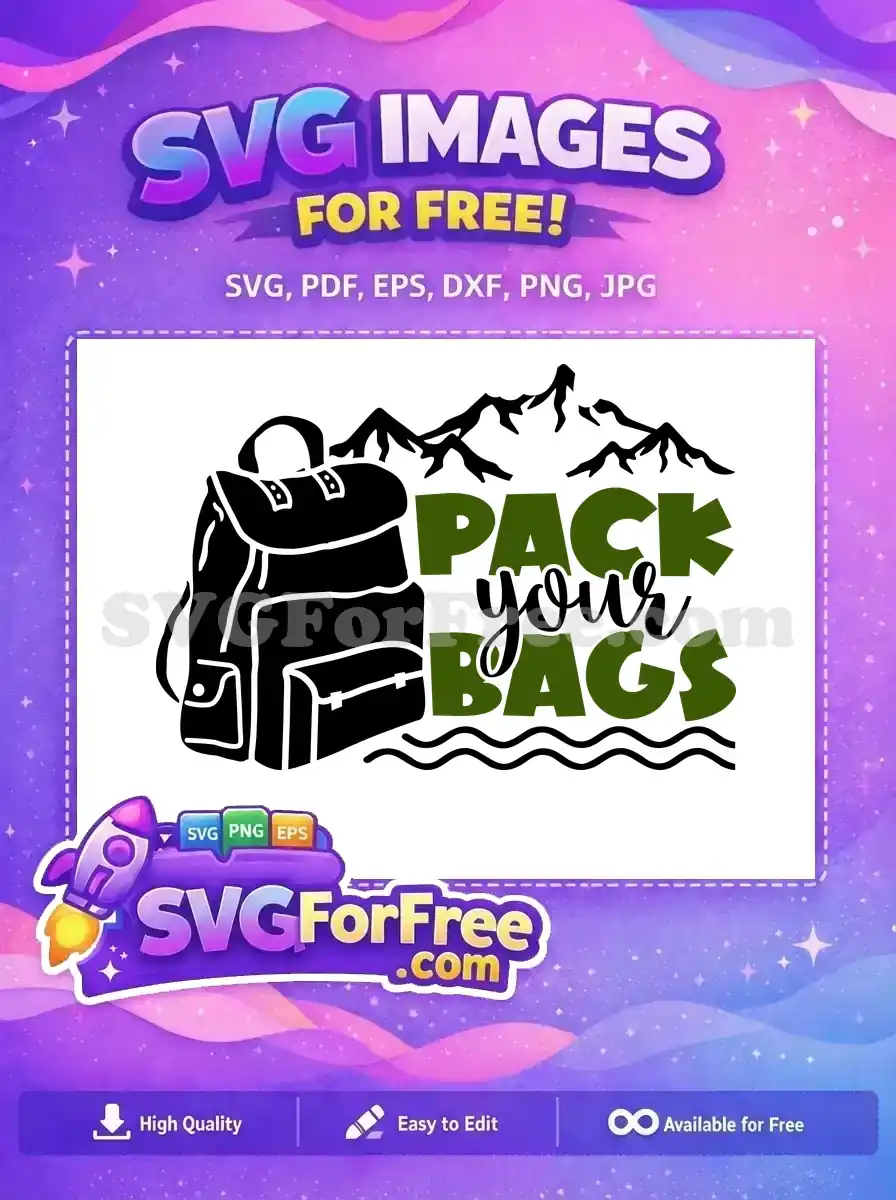Grab this fantastic free design for your next adventure! A stylish backpack and mountain scene inspire travel. Perfect for DIY projects, this free SVG makes packing exciting and fun. Download your free graphic today!