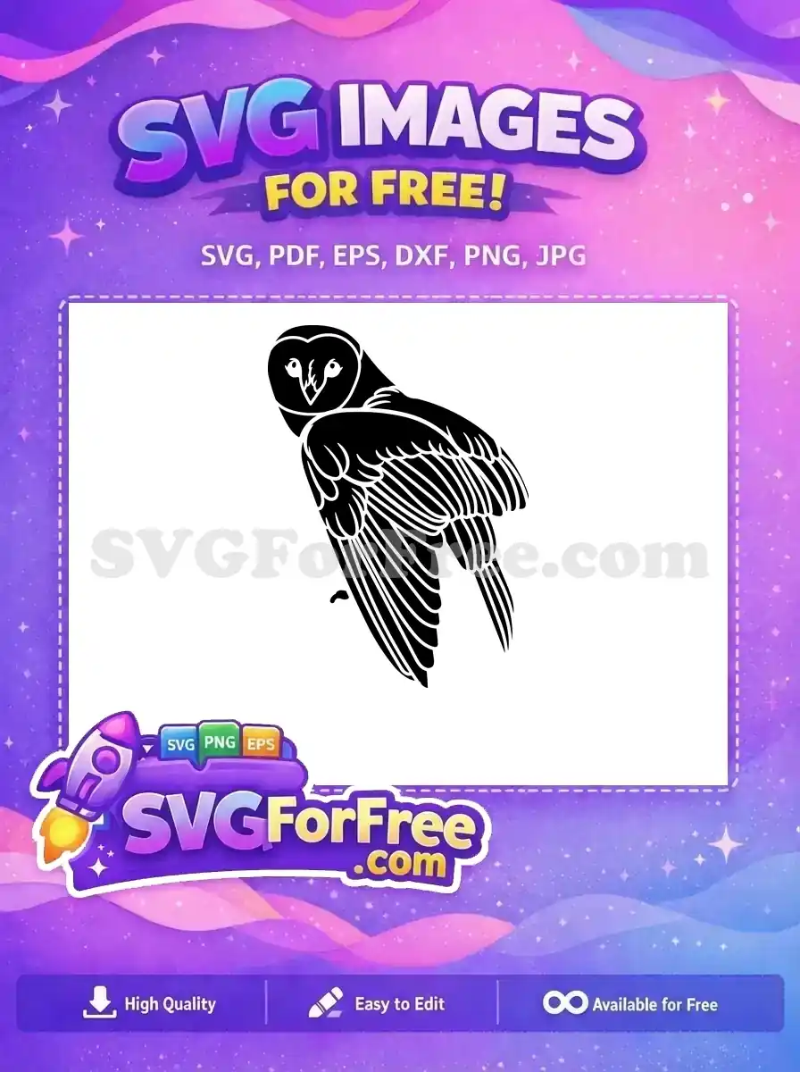 Free Black Barn Owl Silhouette Free Detailed Wings Wise Nocturnal Bird Free SVG – Instant Download
