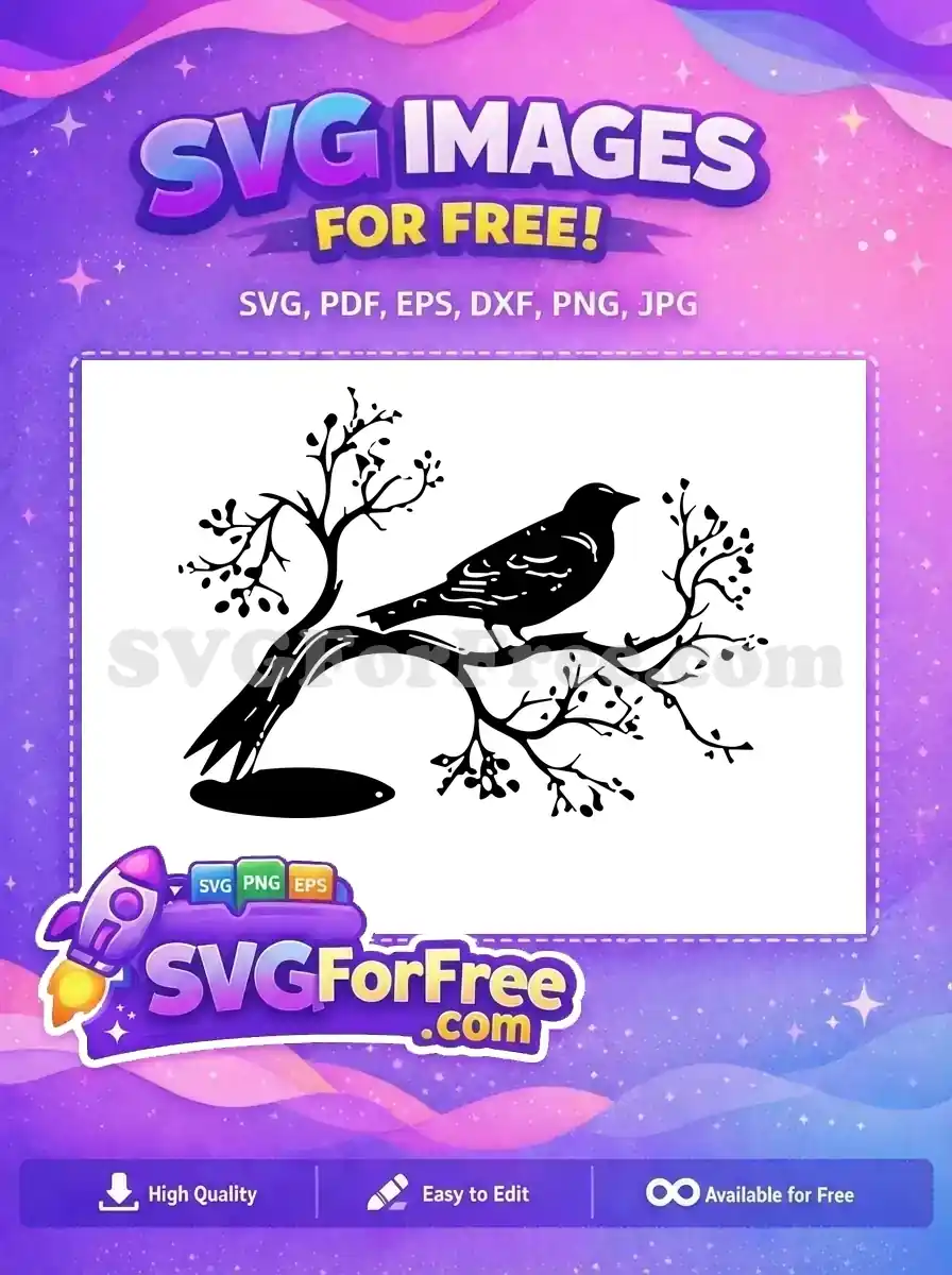 Discover this beautiful free bird on branch SVG design, perfect for nature-inspired crafts and creative projects. A truly versatile free design.