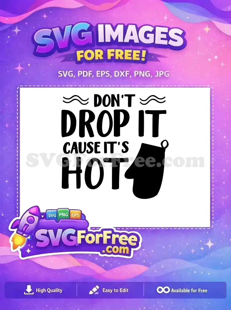 A free vector design with an oven mitt that warns ‘Don’t drop it cause it’s hot’ in a fun, mixed font.