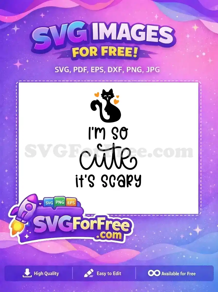 A charming design with “i’m SO cute IT’S SCARY” and a sitting black cat silhouette. A free adorable graphic.