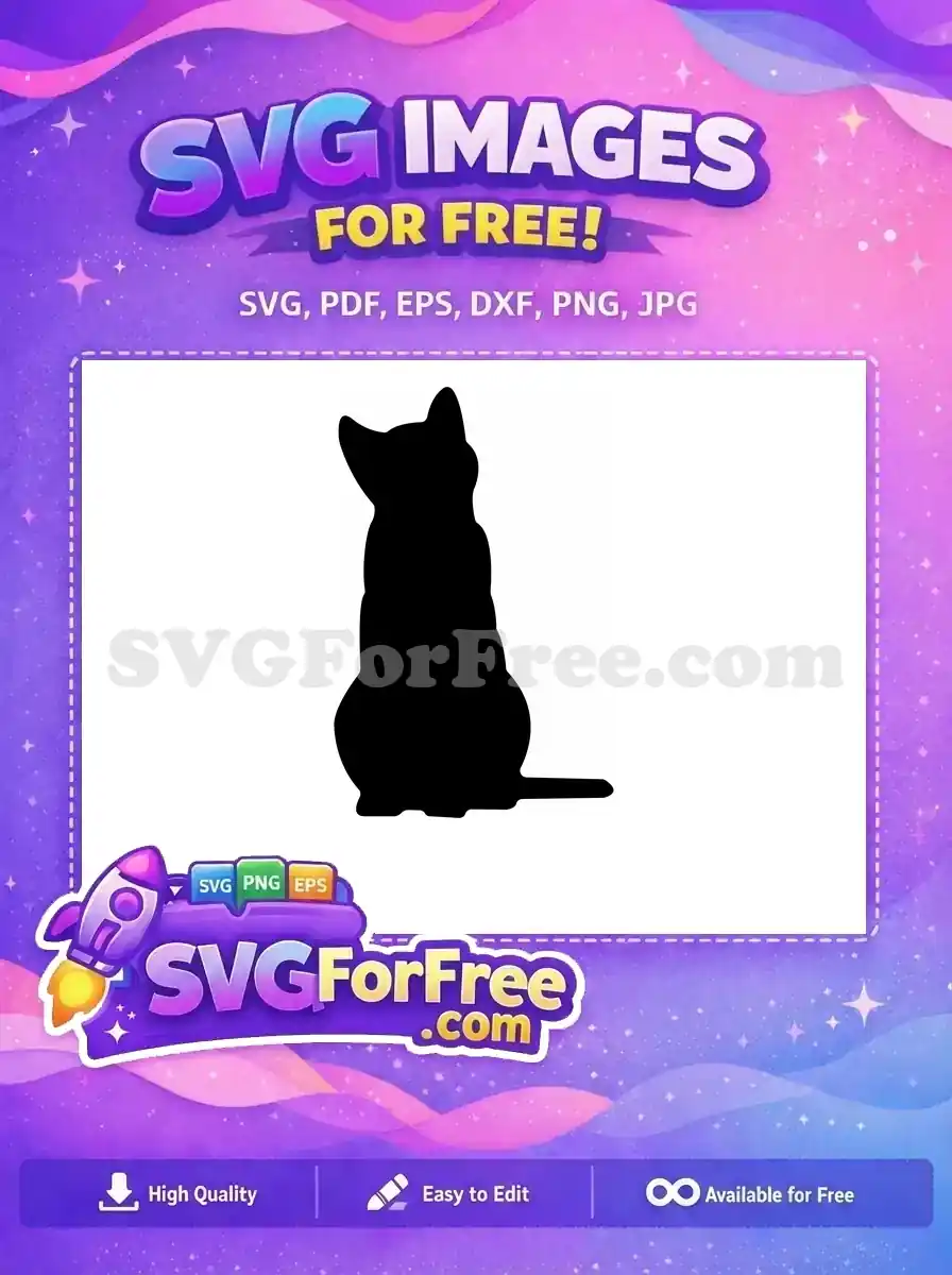 Free Black Cat Silhouette Free Sitting Cat Outline Pet Lover Design Free SVG – Instant Download