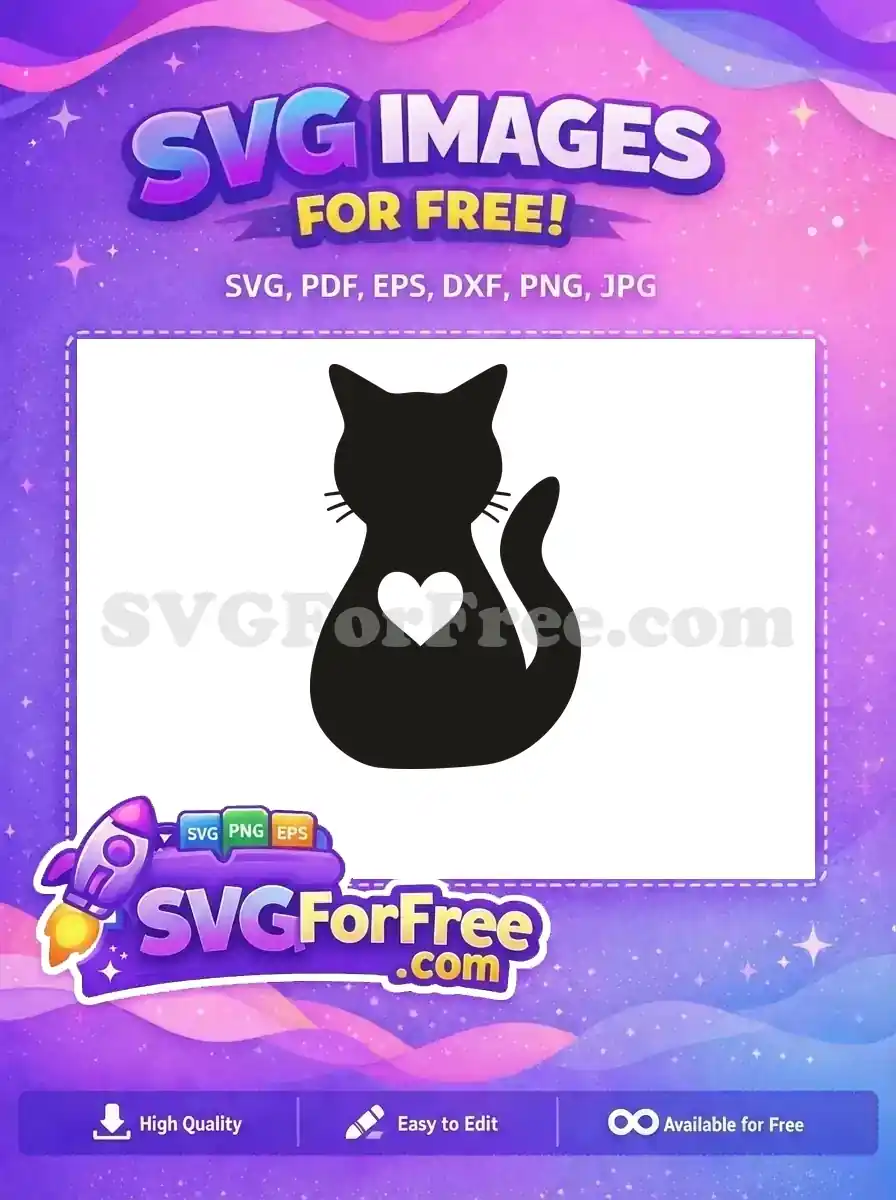 Discover this charming free cat silhouette design, perfect for pet lovers. A delightful free SVG with a heart, ready for your creative projects!