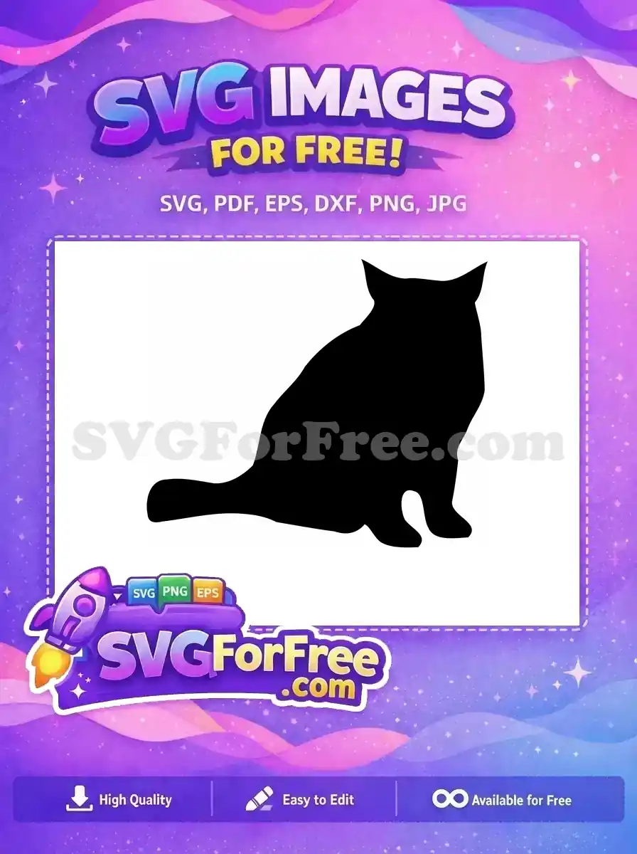 Free Black Cat Silhouette Free Simple Feline Outline Pet Free SVG – Instant Download