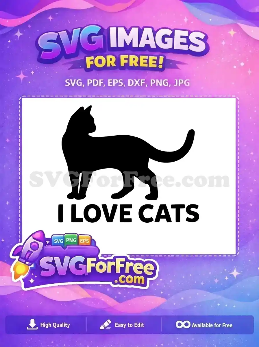 Free Black Cat Silhouette Free I Love Cats Quote Feline Pet Lover Free SVG – Instant Download