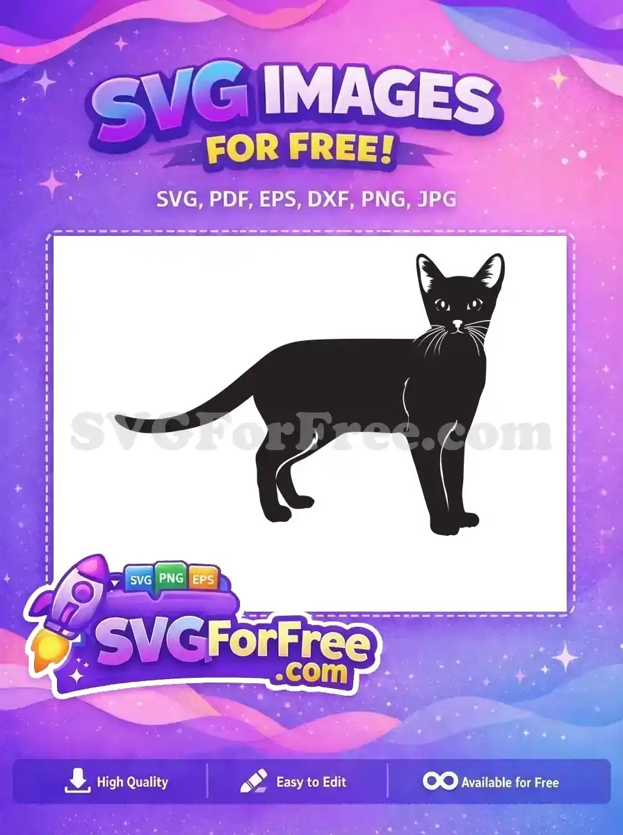 Free Black Cat Silhouette Free Standing Alert Pose Domestic Feline Pet Free SVG – Instant Download