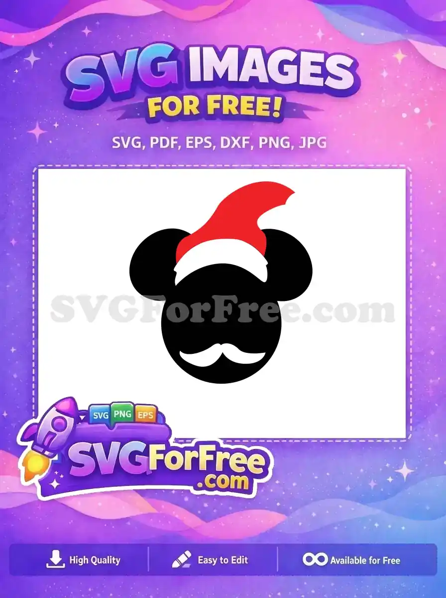 Free Santa Mickey silhouette with a red hat and white mustache.