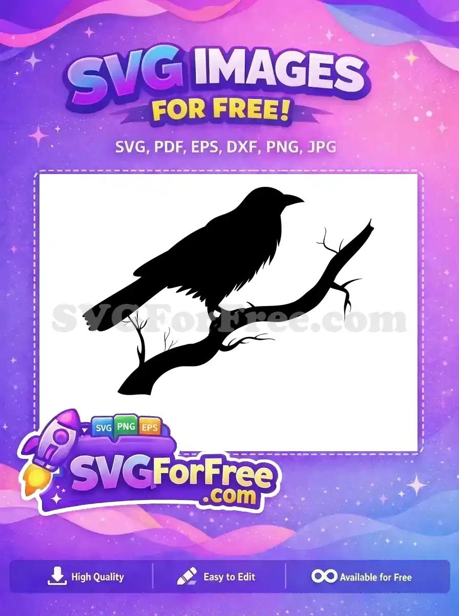 Free Black Crow Silhouette Free Tree Branch Spooky Halloween Free SVG – Instant Download