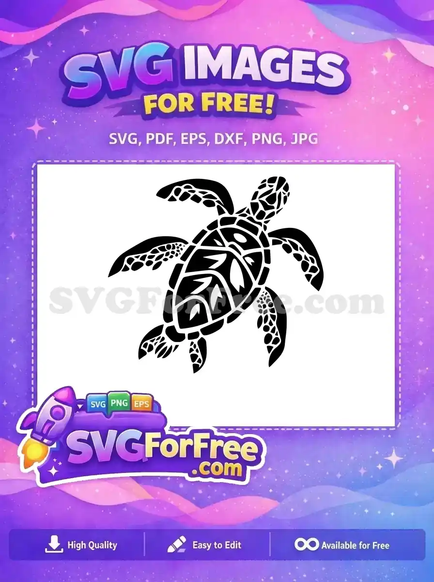 Free Black Detailed Turtle Free Sea Animal Turkey Free SVG – Instant Download