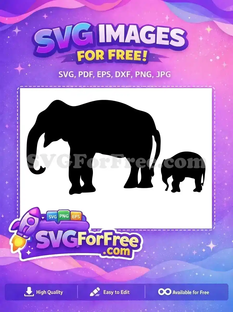 Free Black Elephant Free Baby Elephant Family Silhouette Free SVG – Instant Download