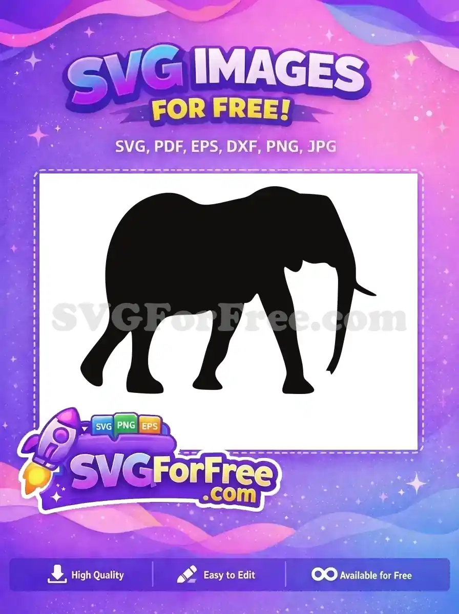 Free Black Elephant Silhouette Free Graceful Walking Animal Wildlife Free SVG – Instant Download