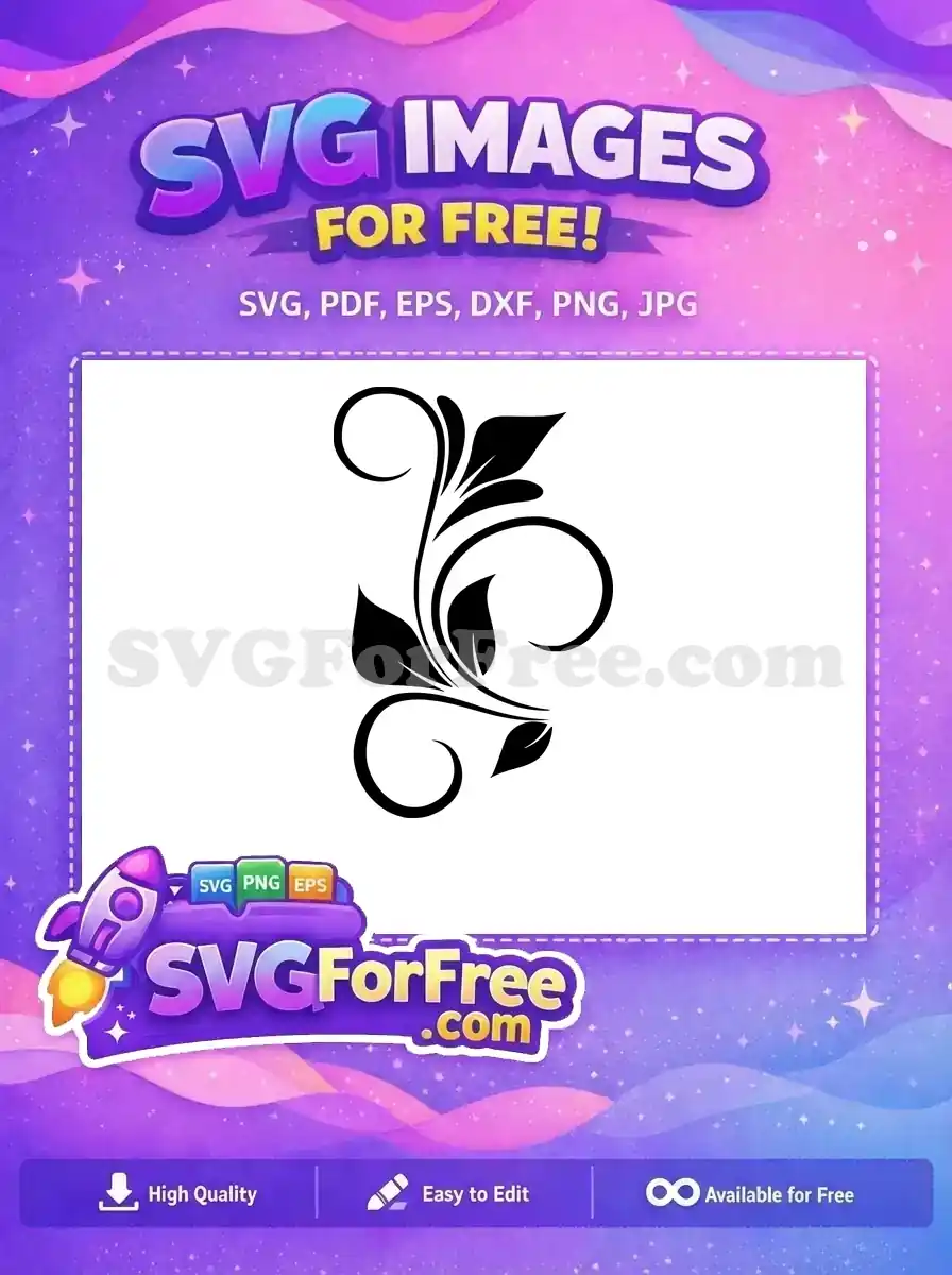 Free black floral swirl Free elegant leaf scroll Decorative Elements Free SVG – Instant Download