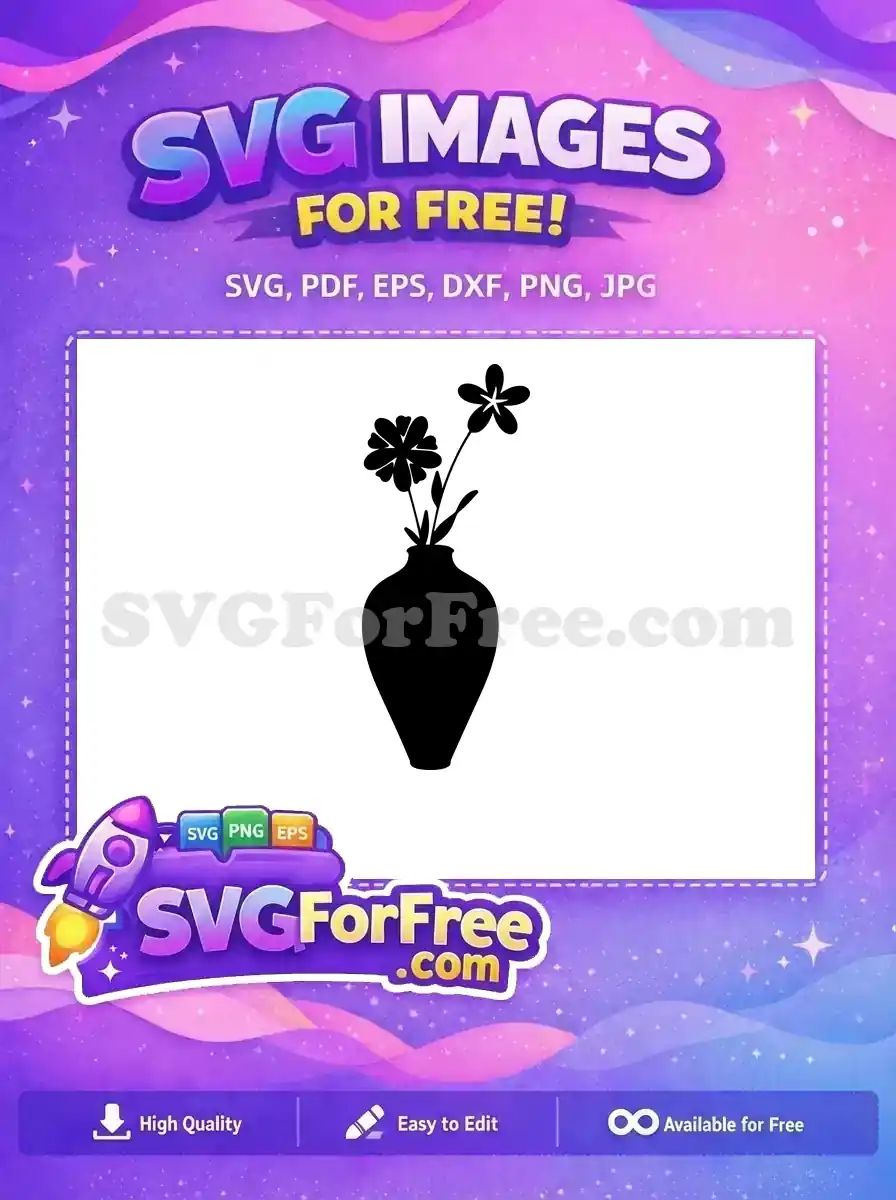 Free Black Flowers Free Vase Silhouette Floral Art Free SVG – Instant Download