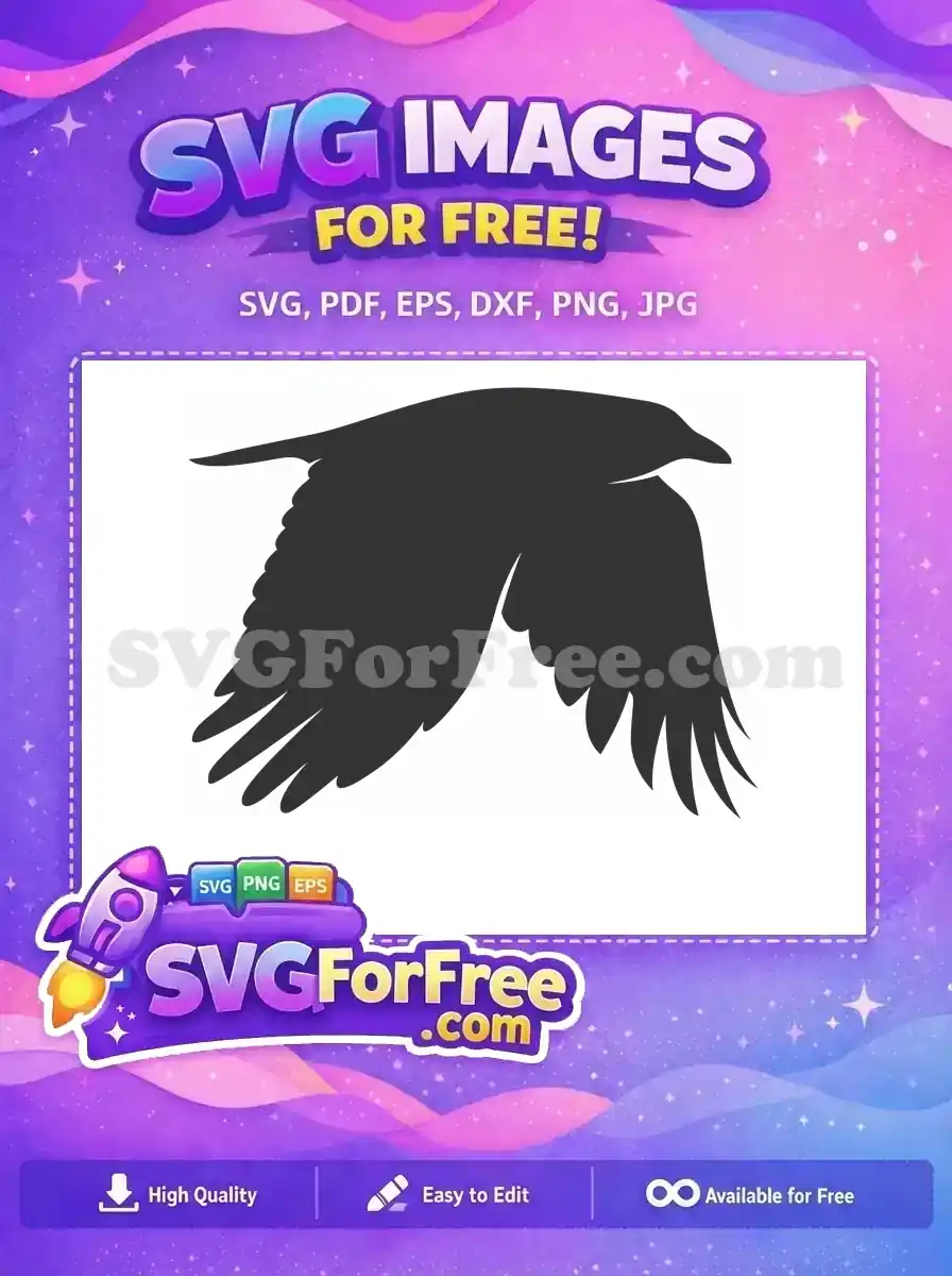 Free Black Flying Crow Free Wide Wingspan Silhouette Halloween Decor Free SVG – Instant Download