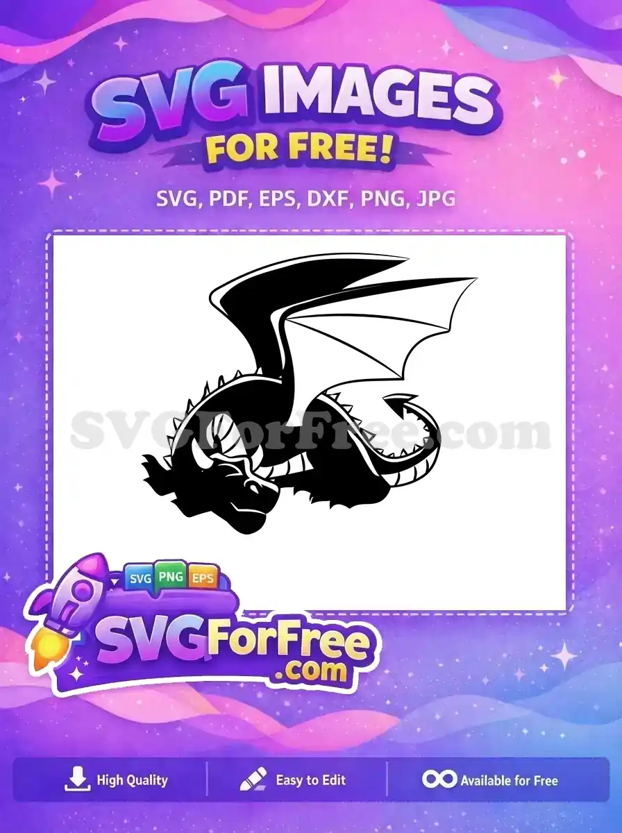 Free Black Flying Dragon Free Spiky Horned Mythical Dragon Silhouette Free SVG – Instant Download