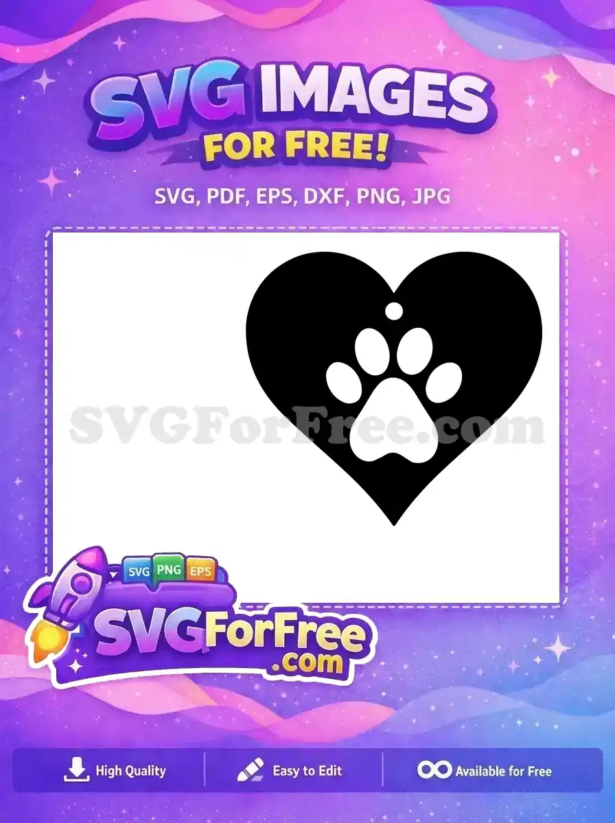 Free Black Heart Free White Paw Print Pet Lover Earring Silhouette Free SVG – Instant Download