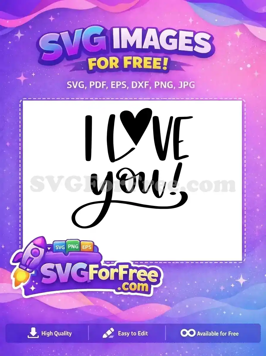 A classic ‘I LOVE YOU!’ declaration in a bold, impactful font, with a solid heart; a free graphic.