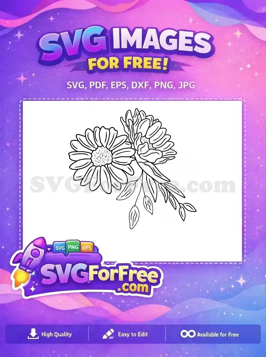 Free Black Outline Flower Free Floral Bouquet Stamp Free SVG – Instant Download