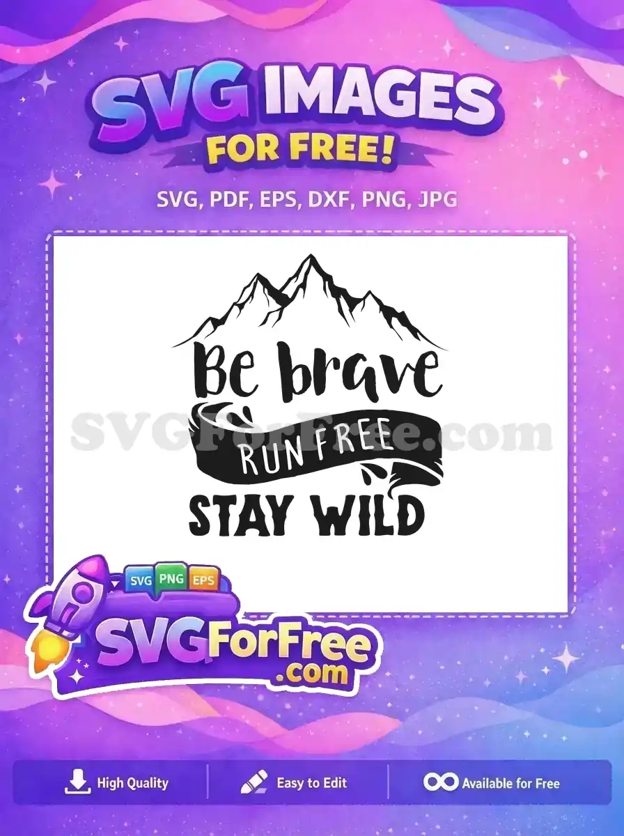 Free Black Mountains Free Brave Wild Text Christmas Quotes Free SVG – Instant Download