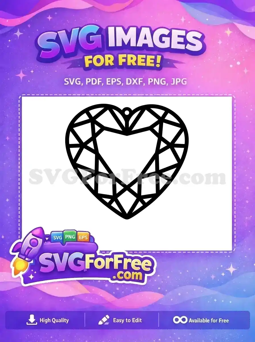 Free Black Outline Faceted Crystal Heart Free Easter Earring Free SVG – Instant Download