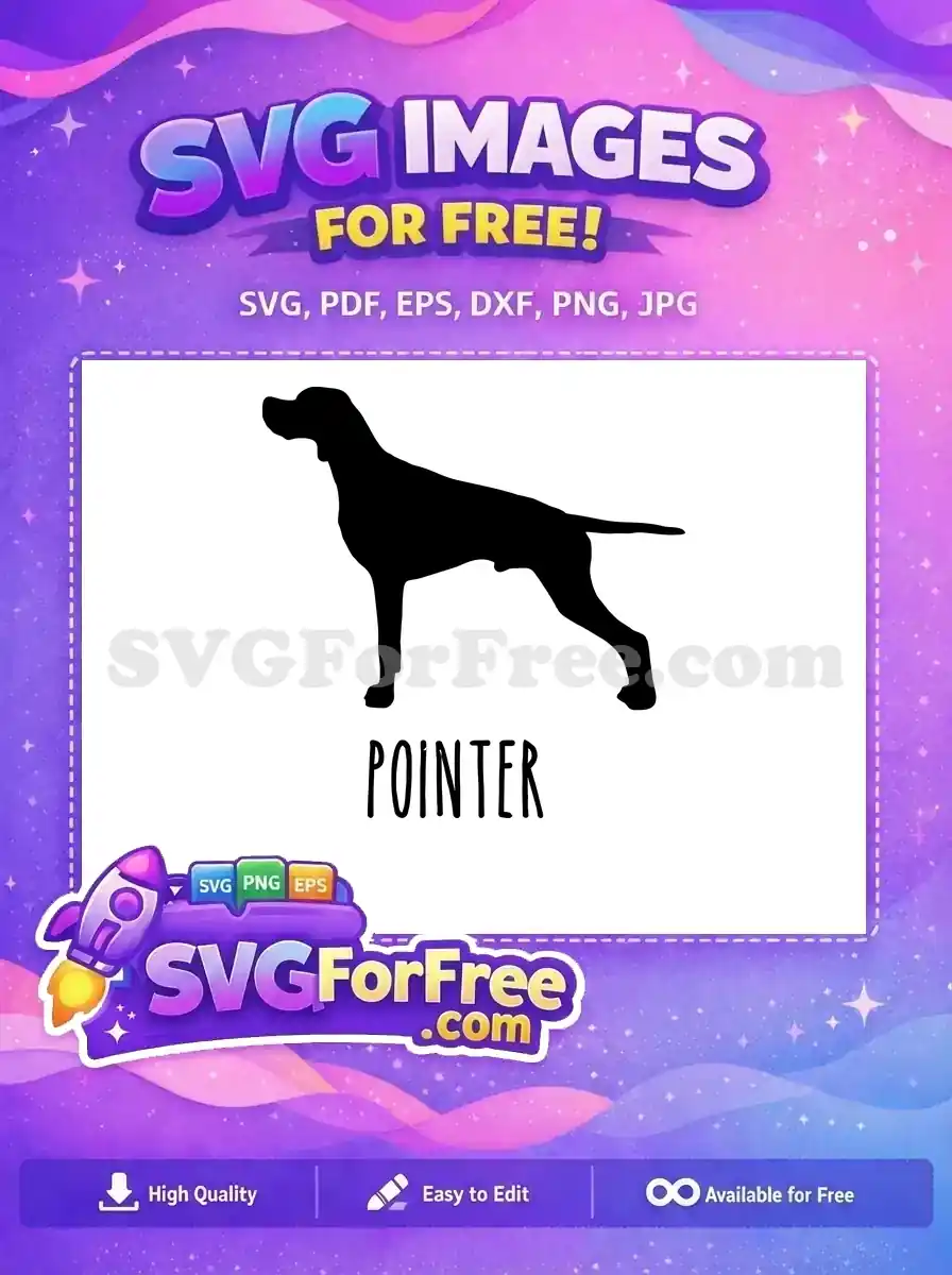 Pointer dog silhouette in pointing stance, free vector image.