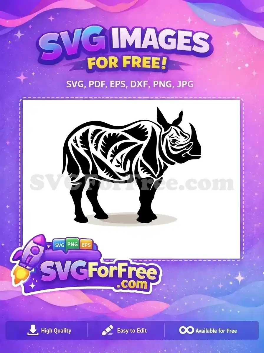 Free Black Rhinoceros Free Intricate Doodle Pattern Safari Animal Free SVG – Instant Download
