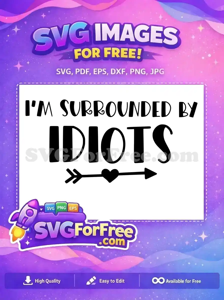 Sarcastic ‘I’m Surrounded By Idiots’ text with arrows offered as a free SVG.